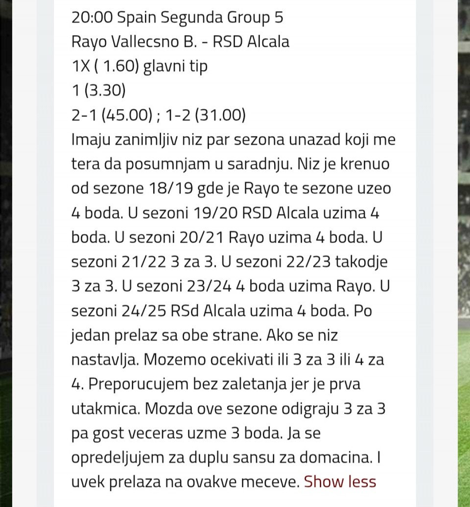 🇪🇸 20:00 Rayo Vallecano B - RSD Alcala X2&2+ (1.70)/ G2+ (2.30) #LOSE ❌