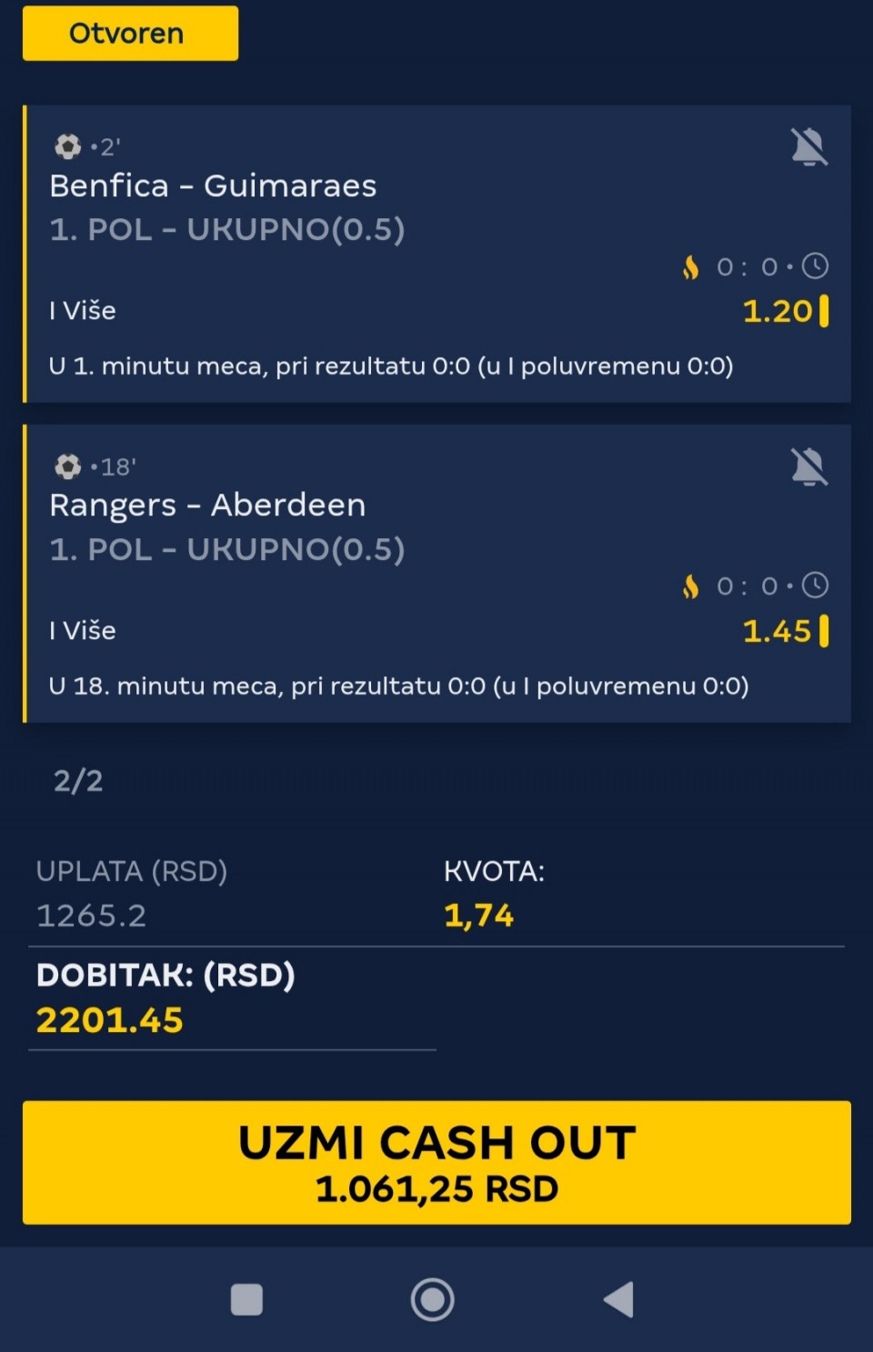 tip: over 2.5 (69minut trenutni rezultat 2:0)