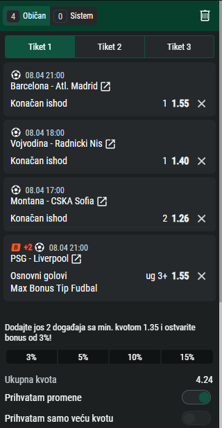 kvota 3.42 soccer. Vrvt necu igrati EL, videcu jos. Za ovu dvojicu cu ispistati analize. Srecno!