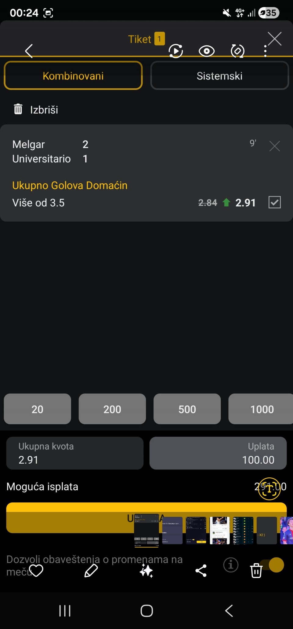 Live Cobresal 2&gg 2,40 54 min 1-1 možda okrene gost.sigirnija varijanta G 1,5+ 1,75 na sitno .