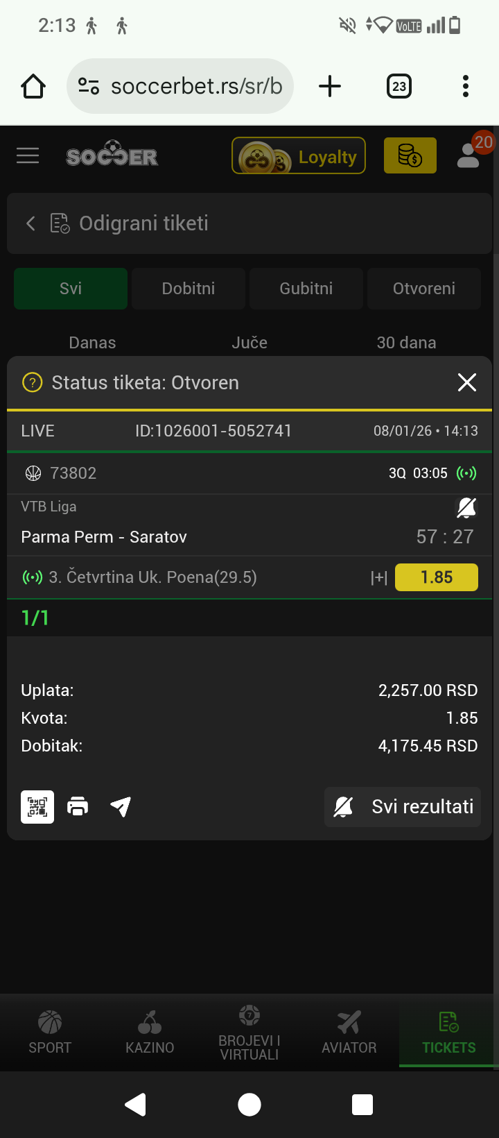 Van Spor vs Boluspor 3+ @2.30 mozzart kladionica