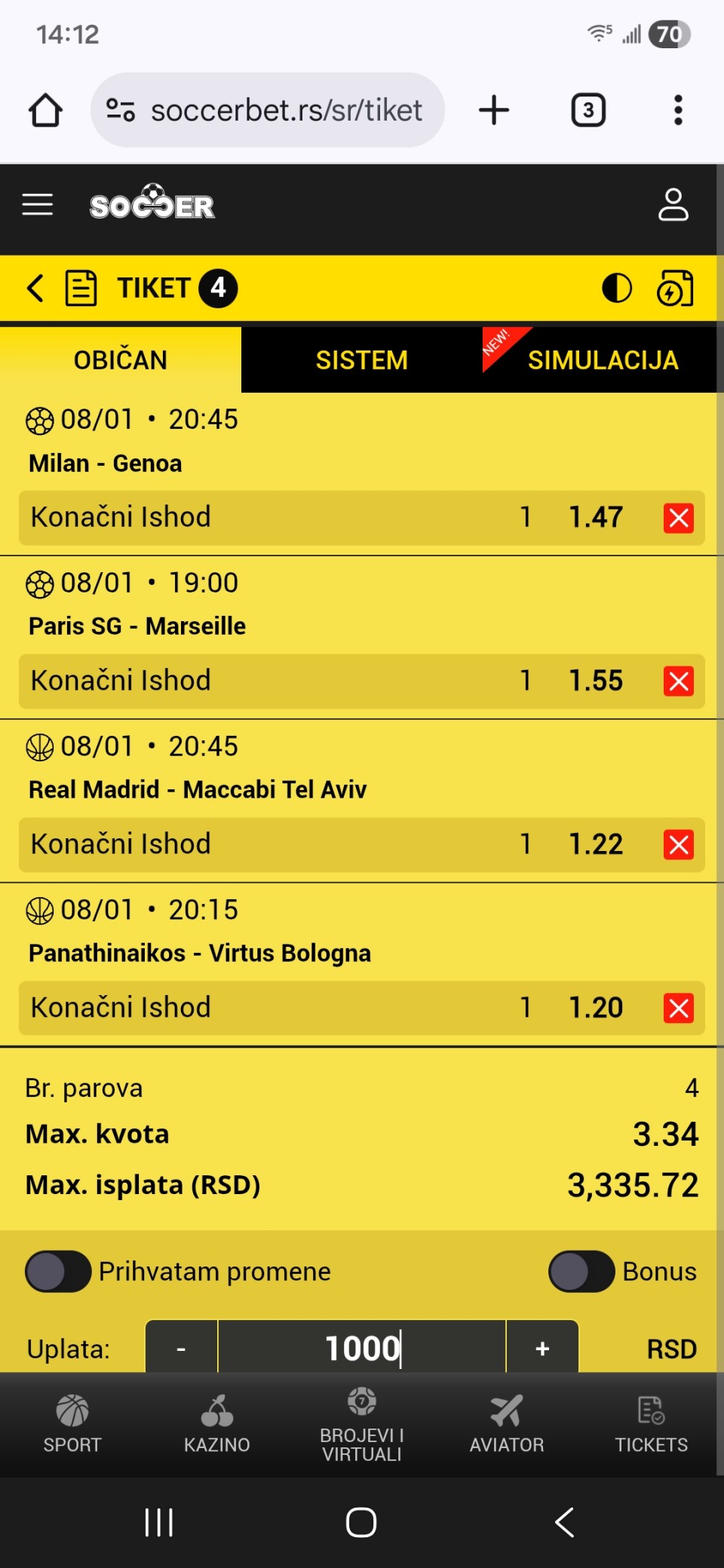 Izaberite šta vam odgovara ili rizikujte pa igrajte sve. Uglavnom kad igram ovoliko mečeva očekujem da će neki pasti pa povratim gubitak na narednom od mečeva, ali se dešavalo i da bude dan sa skorom 9/9 čak.