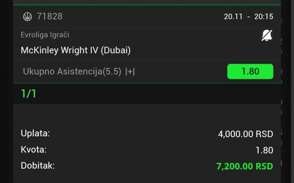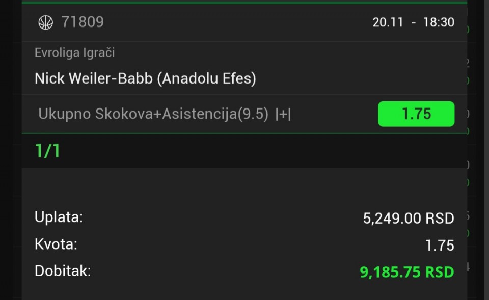 Po meni i mom osjećaju tip dana ,stara kajla koja se ne da vremenu . Coskar stari , koji igra solidnu sezonu i tu je negdje vrti se vazda oko 6-7 poena . Ponekad trica ,ponekad odbitak neki i off skok , ponekad...Ulanovas under 5.5 stake 7/10