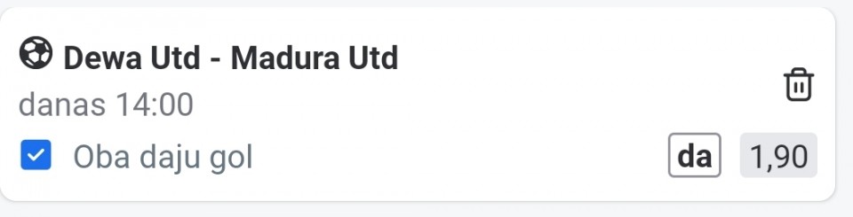🇮🇩 14:00 Dewa United - Madura United G1+ (1.60)/ 1-2 (55.00)