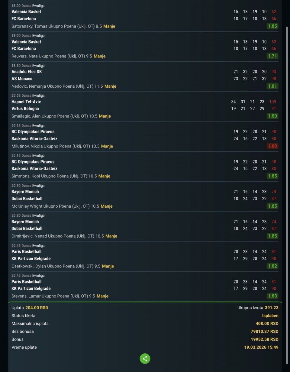 Na kraju LOSE Fernando za jedan skok, nesrećna povreda 4 minuta do kraja i odlična utakmica Jekirija je koštala prolaza i manje minutaže… Idemo opet sutra!
