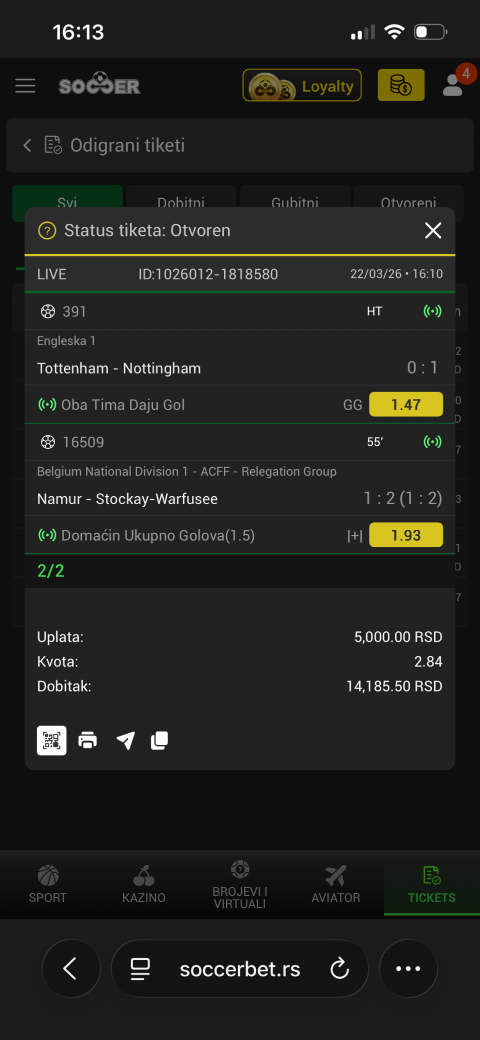 Live da probamo Utrecht 3,5+ 1,56 44 min 2-0 ,Puskas D1,5+1,70 , 1-1 poluvreme. Manji ulog ko prati.Sretno Maxbet