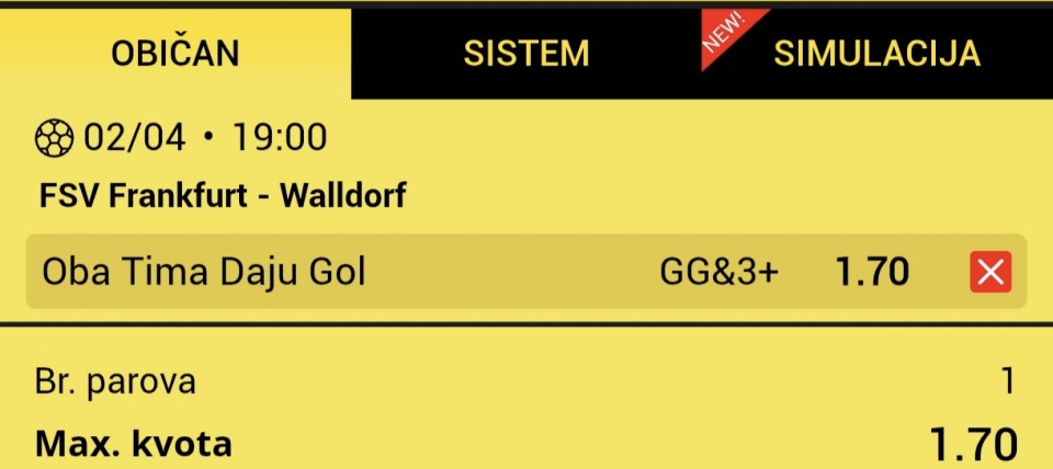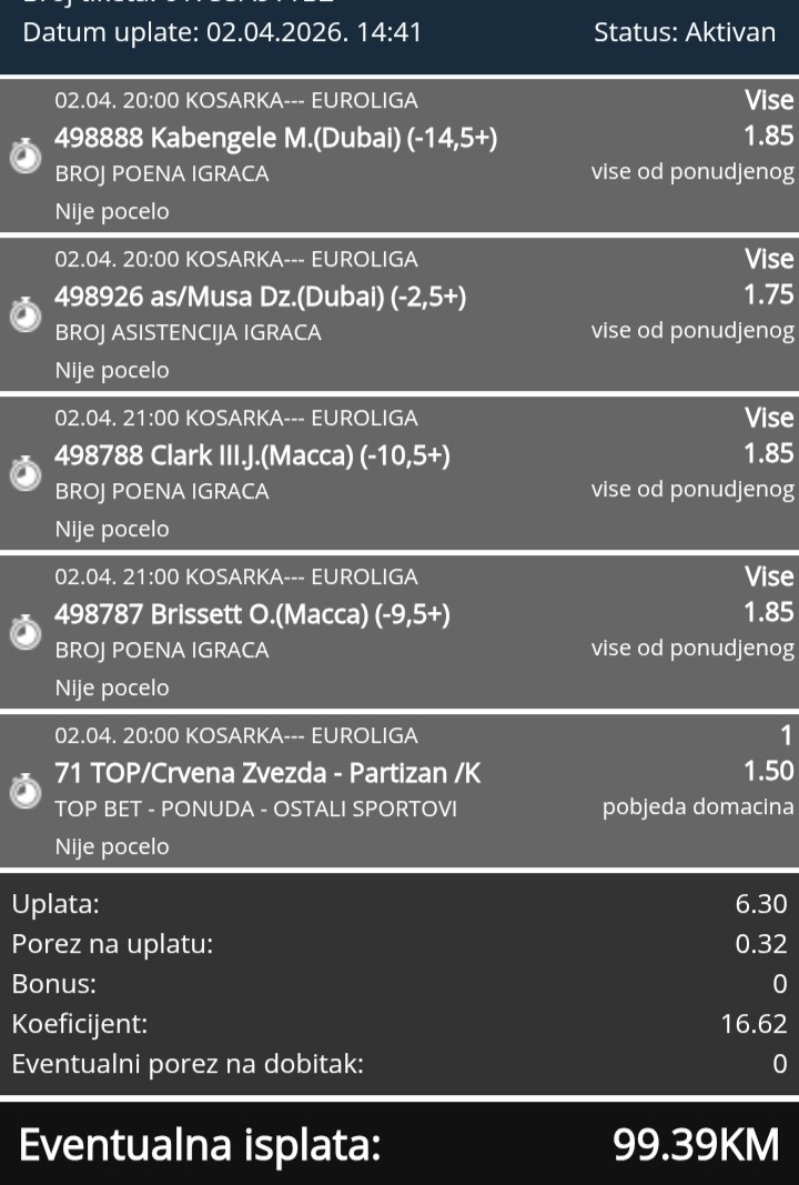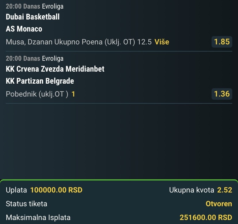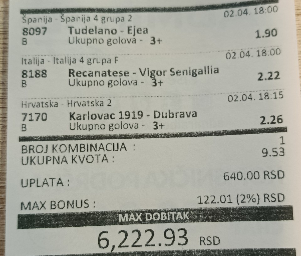 Kopao sam malo i dosao da bi ovo trebalo da dodje.. nadam se samo da opet nece biti granica, ako se pada...Obrni okreni, nekako se vrtim na istom... Tiket EL kvote 12,35