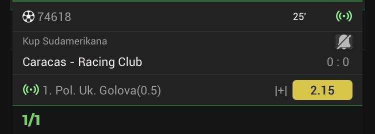 tip: over 0.5 pp (30 minut)