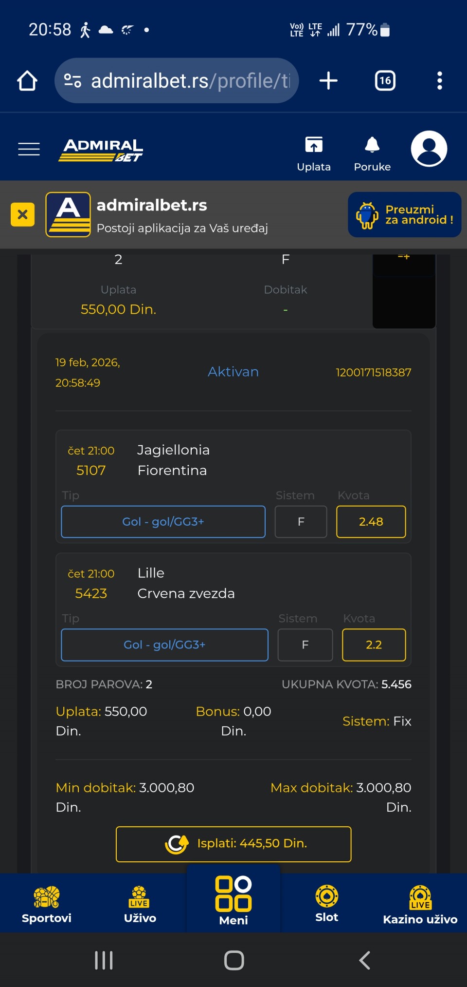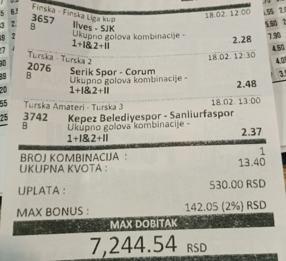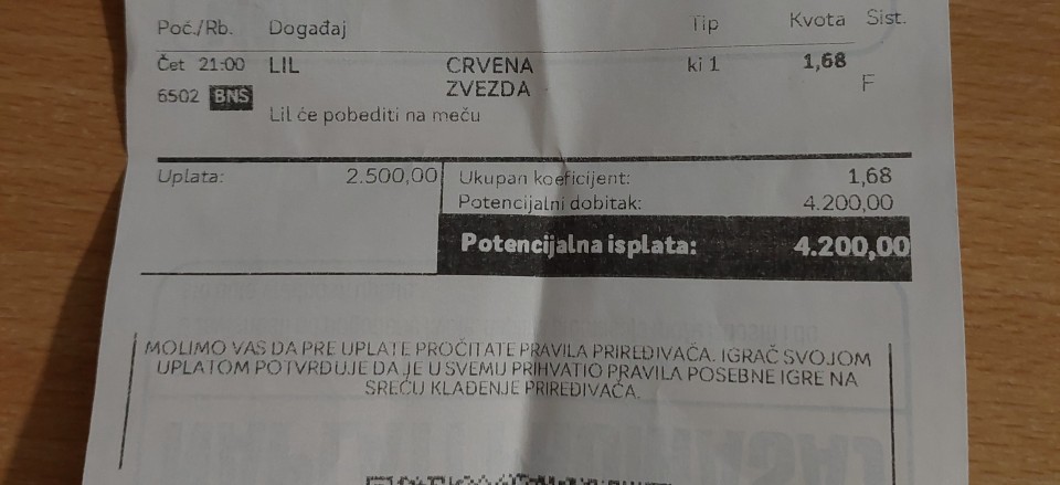 Ovaj tiket je bio plaćen, ali nije prošlo sat vremena od objave, a još sam naglasio da je dobitni, ali je skinut. Pravila se moraju poštovati, koliko sam čuo sat vremena između objava. Šteta za ovo, šteta za Arsenal. U komentaru jedan uživo da...Ovaj tiket je bio plaćen, ali nije prošlo sat vremena od objave, a još sam naglasio da je dobitni, ali je skinut. Pravila se moraju poštovati, koliko sam čuo sat vremena između objava. Šteta za ovo, šteta za Arsenal. U komentaru jedan uživo da ispoštuje o pravila i ne kačimp novu fotku jer će je skinuti Show more