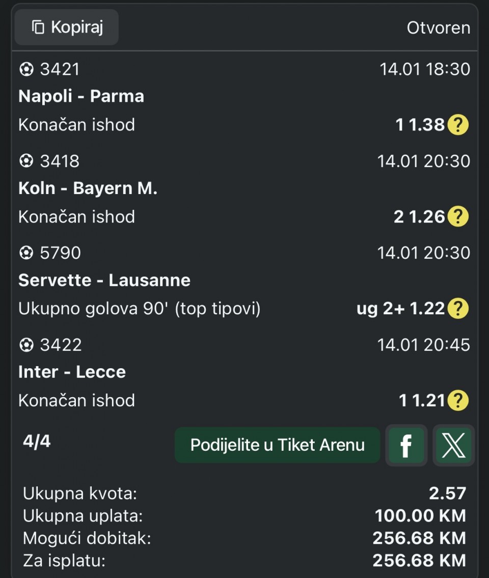 Opet vama se javi stari Bugarski KLATIKURAC so odboika u 17.00h.Mec e SL odboika-zene: Vakifbannk-Alba Blaj 126.5 over,kvota na 1.80.U grup domakin ima 3/0 gosti 0/3.Za domakinke ovi mec e 4-ti u redu samo za 10 dana.Na svi drugi 3 su izgubili po...Opet vama se javi stari Bugarski KLATIKURAC so odboika u 17.00h.Mec e SL odboika-zene: Vakifbannk-Alba Blaj 126.5 over,kvota na 1.80.U grup domakin ima 3/0 gosti 0/3.Za domakinke ovi mec e 4-ti u redu samo za 10 dana.Na svi drugi 3 su izgubili po set.Dobro poznaem mantalitetu trenera domakina Guideti,mislim ce danas moze ima rotacia u postave.Poena su priemlivi 126.5 +.Ovo za meni znaci ,ce ako gostenke gube so 0:3 ,one treba da dau poena u setovima kao 17-17-18,ako li pak uznu i set nama e dobro doslo.Ja igram so 16 eura/ zarada na odboiku ot uce/.Ko zeli neka odigra,da ne bude posle nasa Bugarska prica: " Ko jebal-jebal,kaka se ozeni .!!! Show more