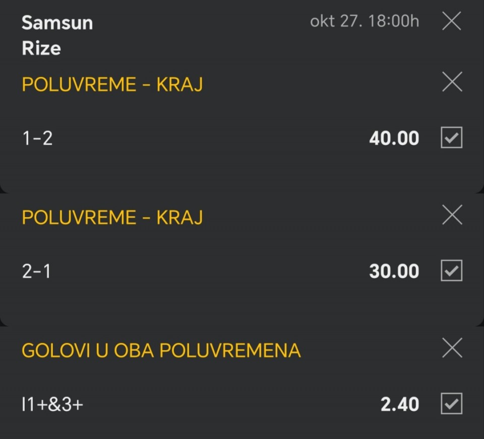Samsunspor 1+I&3+ 2,40 nije ucitalo na prvom paru. Srecno.