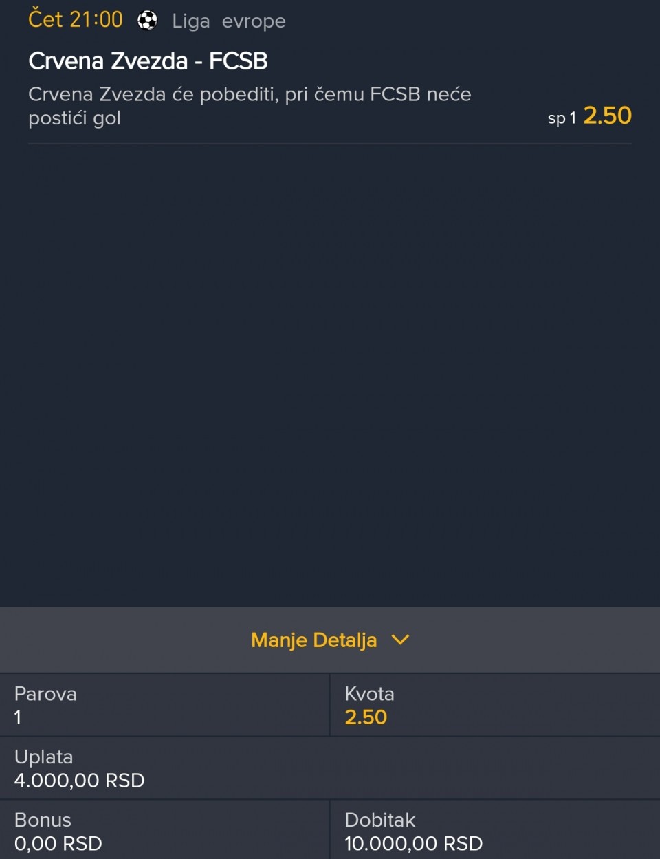 Boze sacuvaj veceras.....koliko je odvratna ova liga sampiona....Frankfurt 3 gola primi u 5 minuta od Atalante i obori me za 250e...