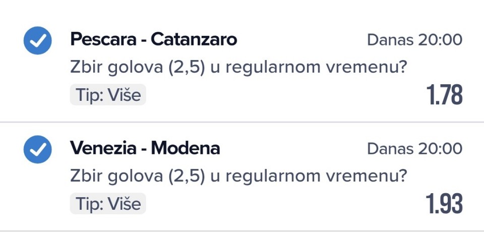 Venezia 1 @1.76 (po...Ajmo ovako danas, nema nekih “sigurica” ali tu su interesantne kvote svakako.:. Nisu se skoro zaredjali favoriti 2 dana za redom pa ce mozda sada: