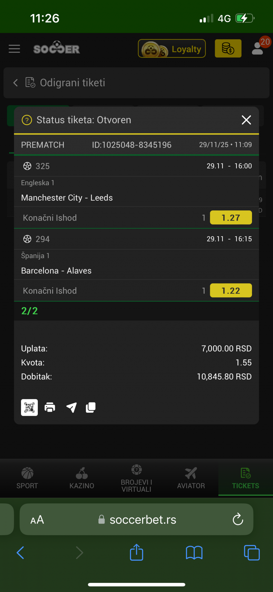 Kvota 250+ zavisno od Kladare i naravno pojačano na ostalim tiketima sa opcijama 3+ i 2/1