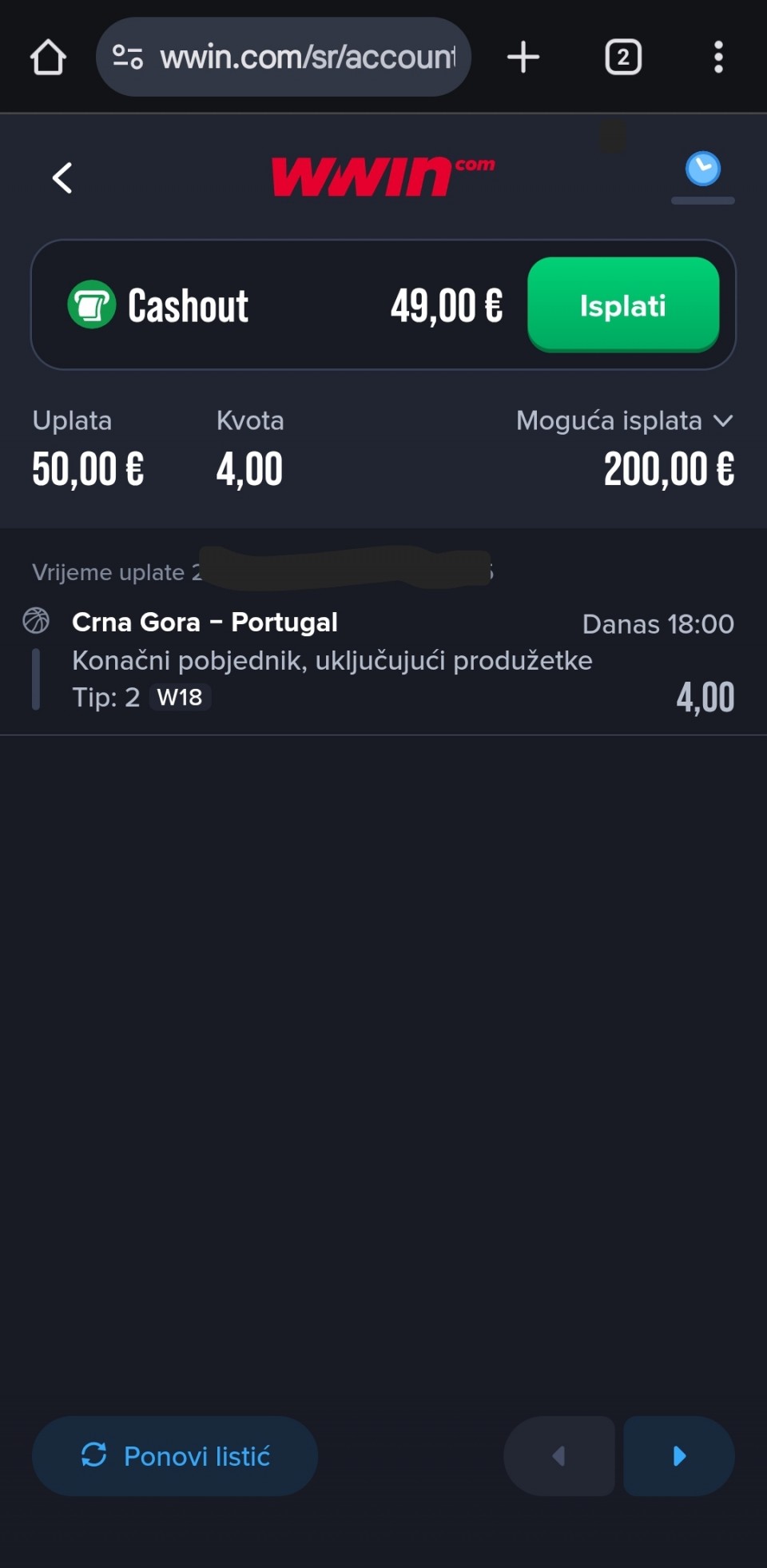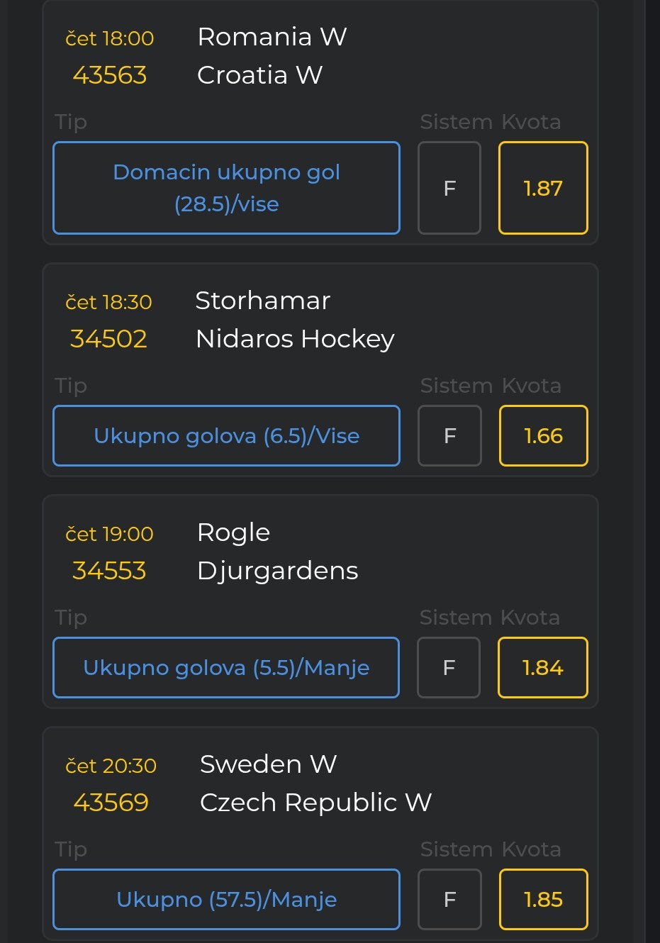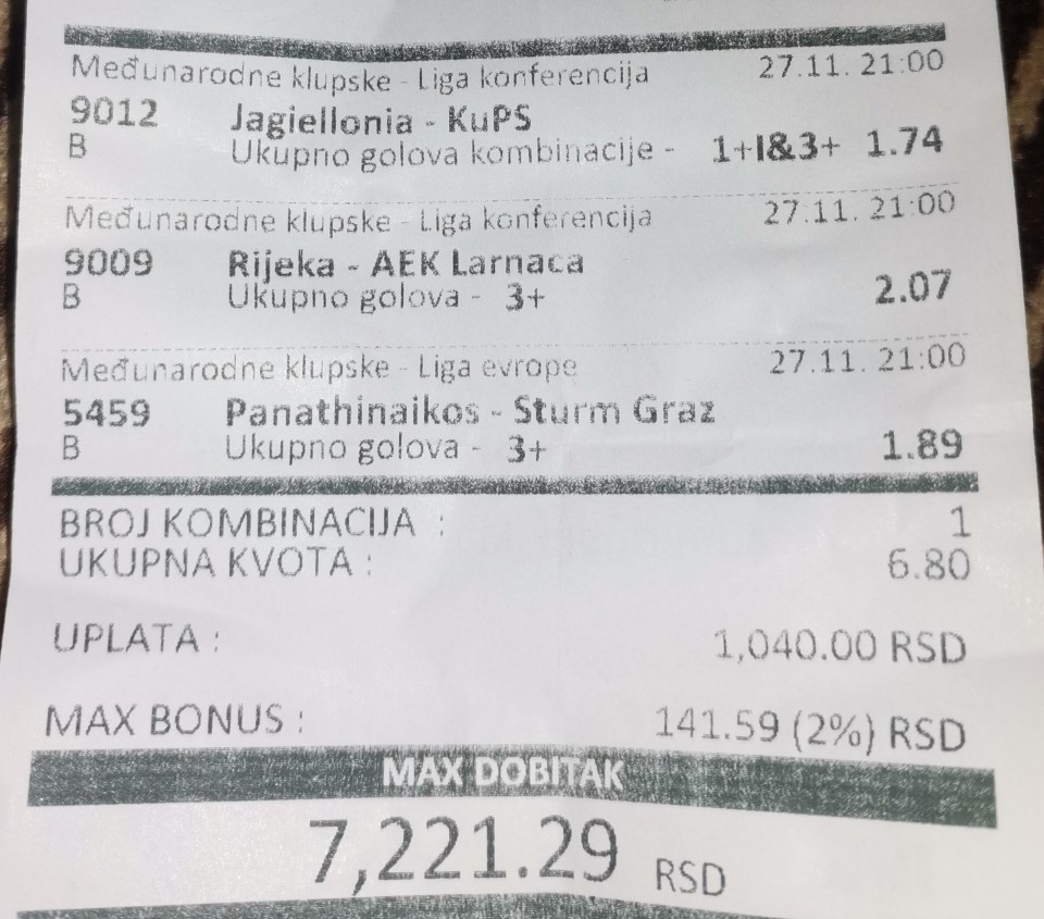 jednostavno moram ovaj dubl i kvotu na dupli ulog, srećno