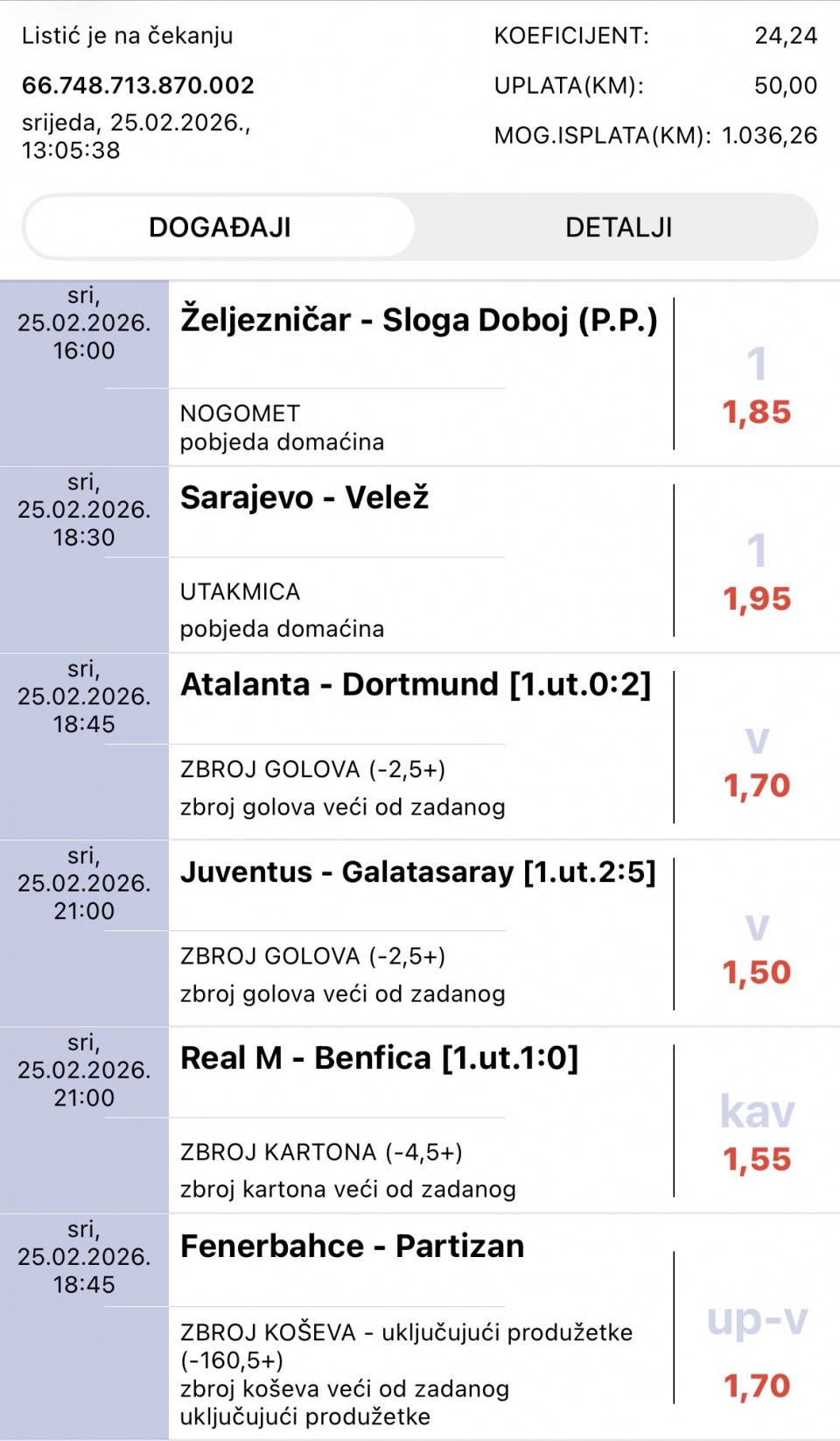25.02. Kvota: 2.54 → drugi korak