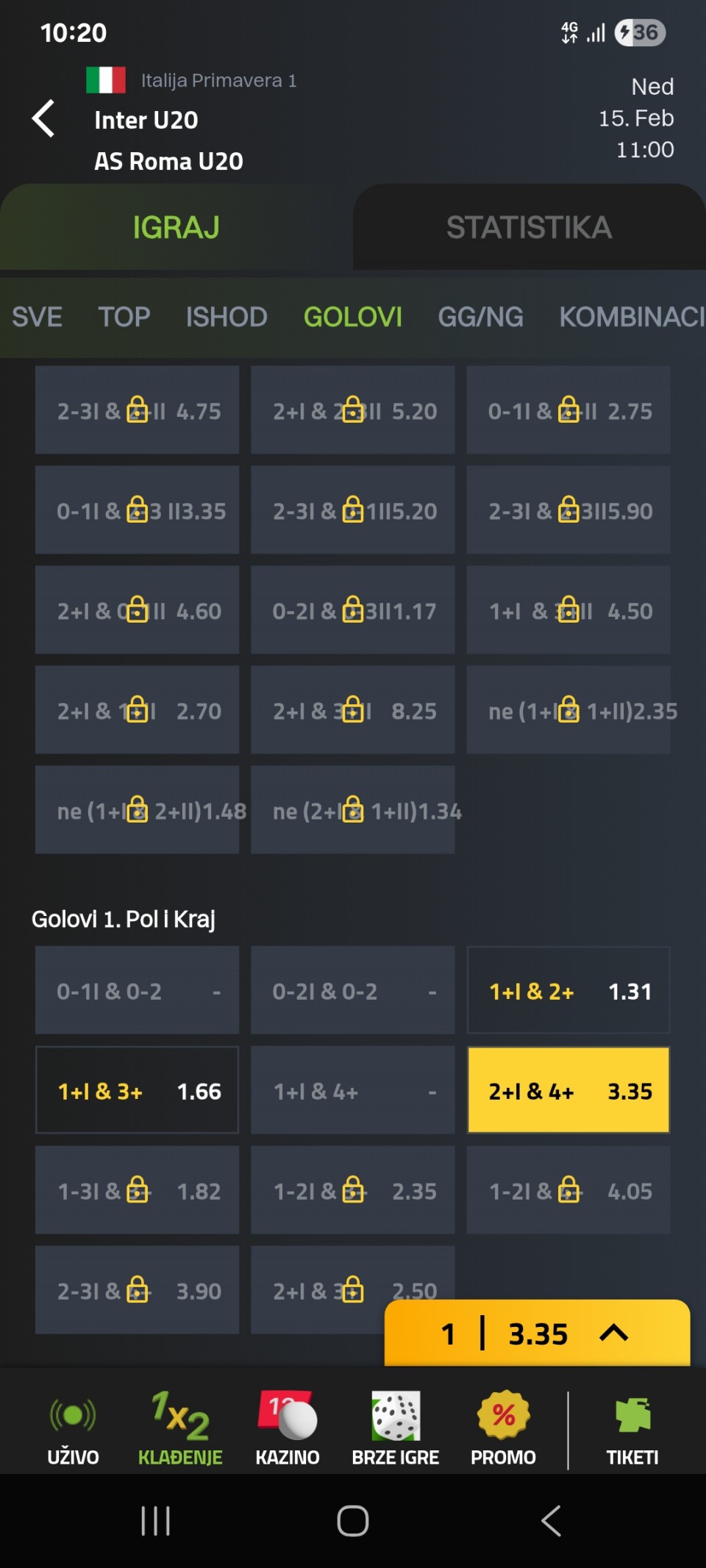 znači danas ne jurim dublove i kvotu 2+ pravim pauzu