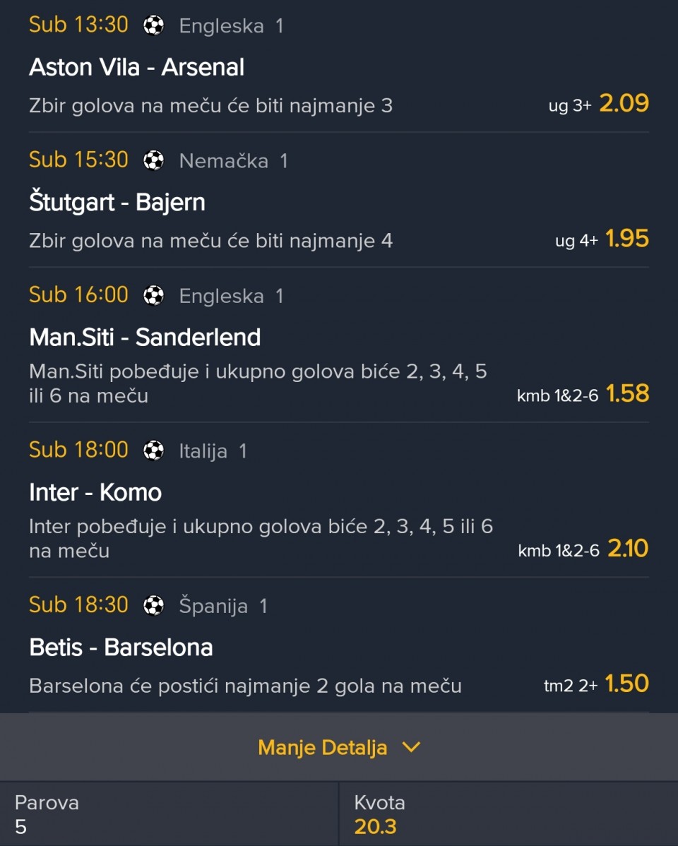 Za danas sjajna ponuda sto se fudbala tice, pa dok ne krenem na posao cu postaviti malo vise analiza za one koji bi probrali nesto najsigurnije po analizi !