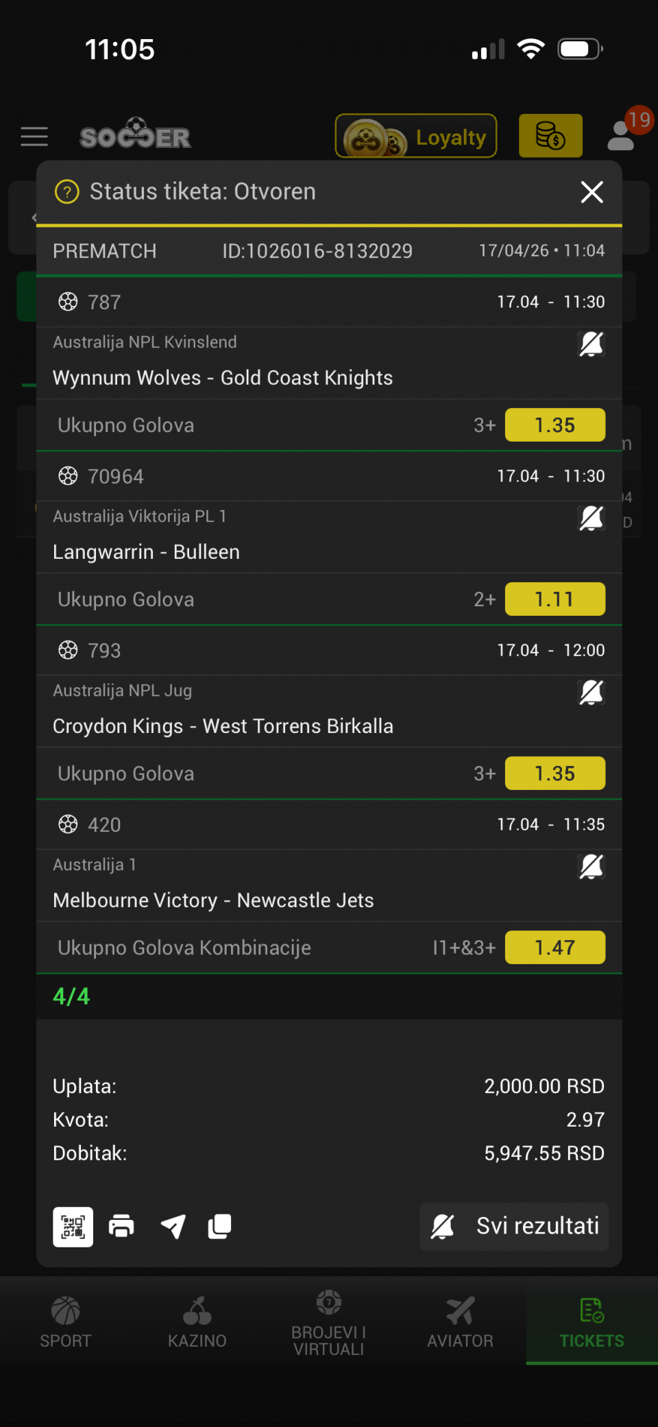 zbroj golova Mork Nora (5.5) ispod koef 1,8-dala 3