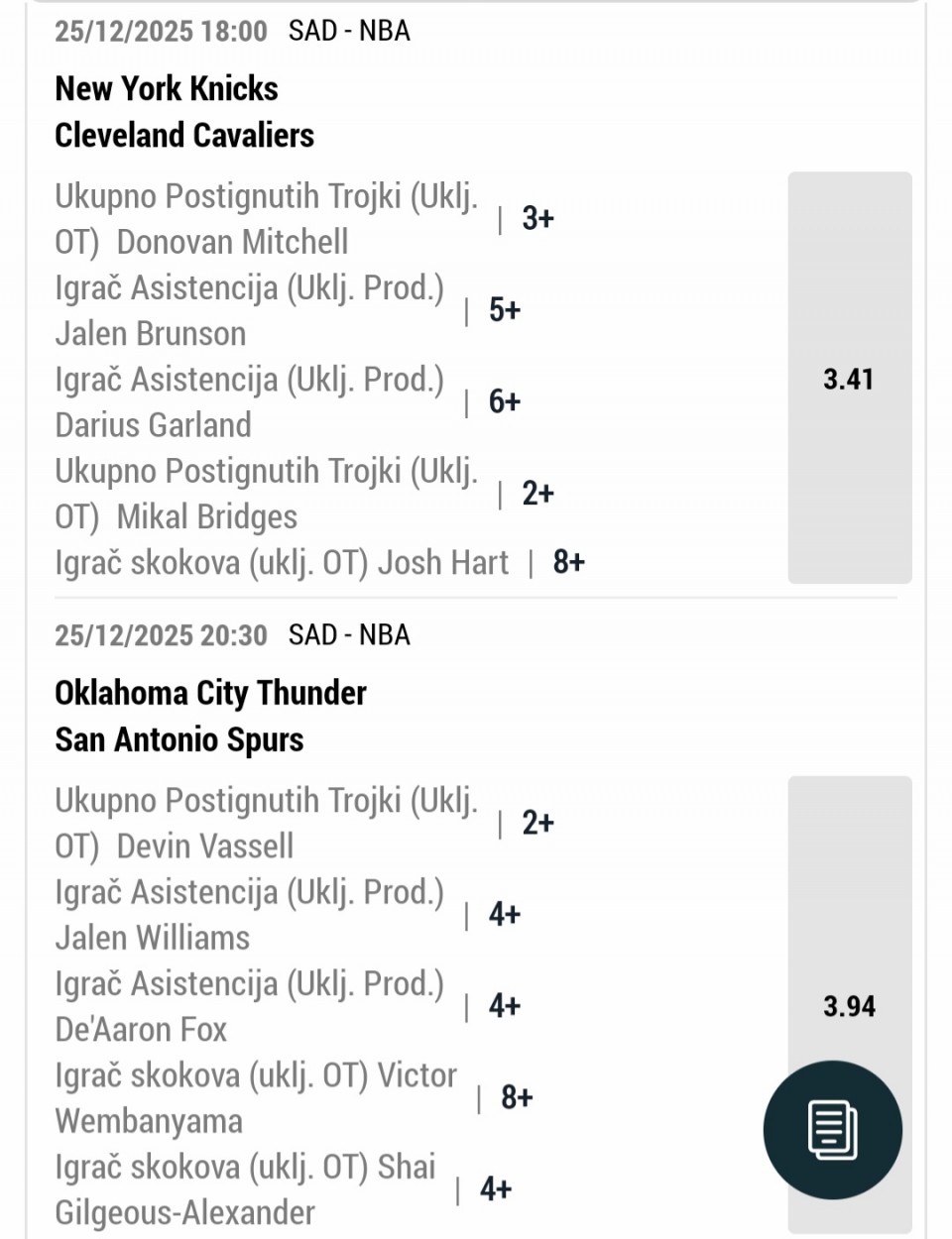 Dobar dan svima, stize i Praznicni NBA od mene za danas, pre svega zelim da pozelim Srecan Bozic svima koji slave kao i svi ostali praznici koji tek predstoje, a u duhu darivanja, makar sto se mene tice danas stize i koja analiza vise !