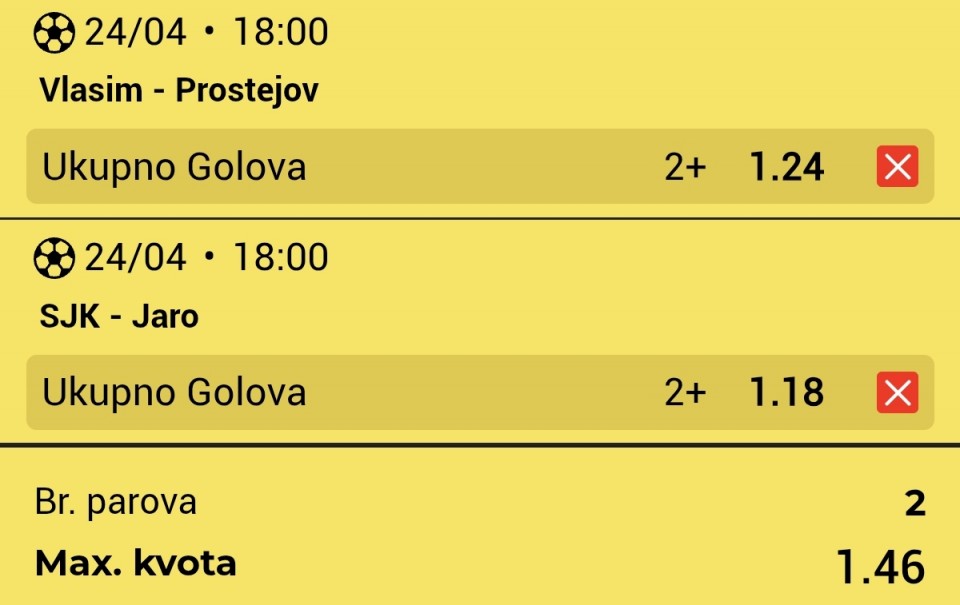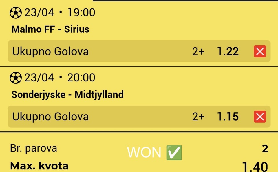 Prvi tiket sam prošao, za one koji prate, sad na sledeći tiket ne prebacujem ceo dobitak, nego opet igram sa ulogom sa kojim sam igrao i ovaj tiket. Do prvog maja igram ovako, ako bude dobar profit nastaviću ovaj način klađenja. Nov tiket za sutra...Prvi tiket sam prošao, za one koji prate, sad na sledeći tiket ne prebacujem ceo dobitak, nego opet igram sa ulogom sa kojim sam igrao i ovaj tiket. Do prvog maja igram ovako, ako bude dobar profit nastaviću ovaj način klađenja. Nov tiket za sutra je tu.
