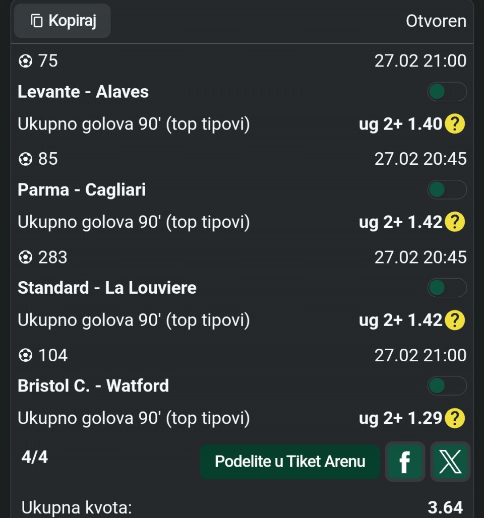 Nadao sam se efikasnom susretu kod Norvezana i Engleza, zapravo bilo je neefikasno, steta. Nastavljamo dalje, pre nego da krenem sa regularnim predlozima, probacu jedan live na manji ulog: