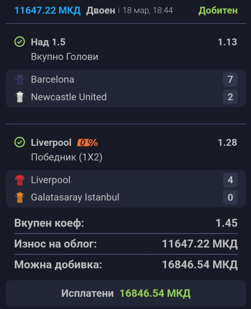 🇪🇸 18:45 Barcelona - Newcastle GG&I1+ (1.70) #WIN ✅/ Gordon daje gol (3.40)/ Yamal daje gol (2.25) #WIN ✅