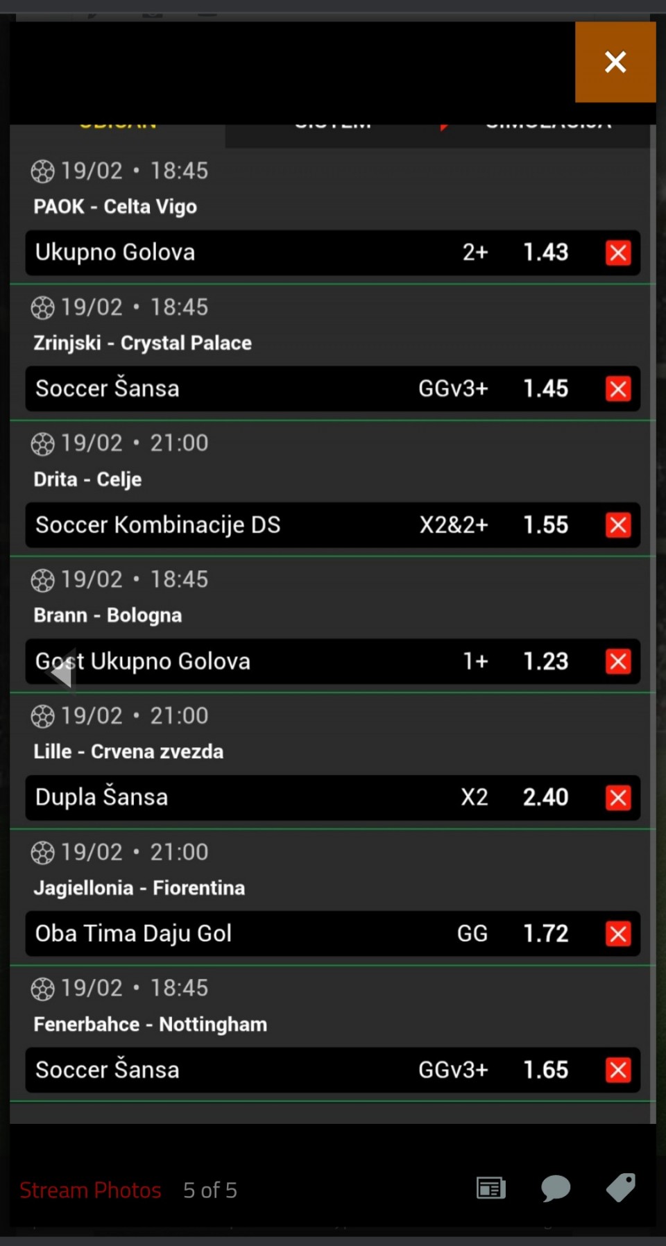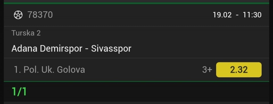 19.02. Kvota: 3.20 → prvi korak