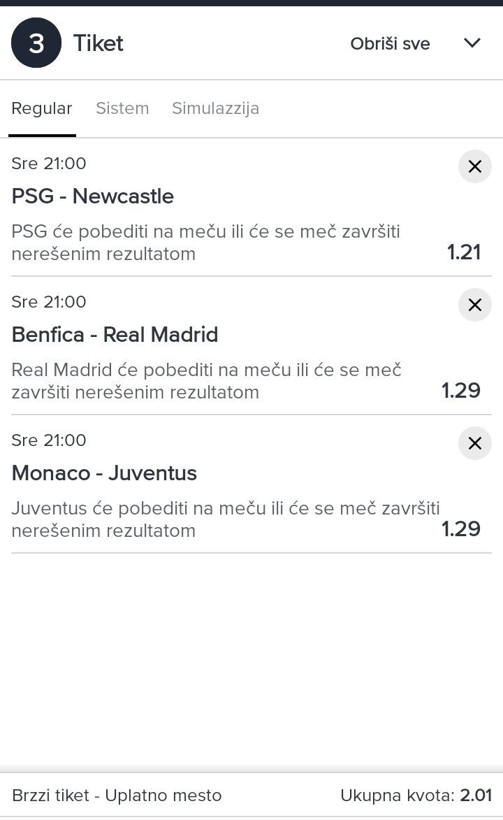 Juče nisam imao sreće, da probamo danas, tiketi 0/1: