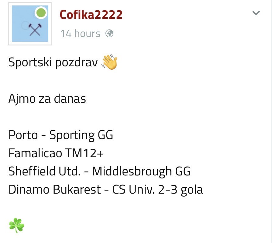 Pejn ne igra ....Calates 5,5 iskoristite dok ga ne sklone ....Srecno ... Cica 8 poena 👌