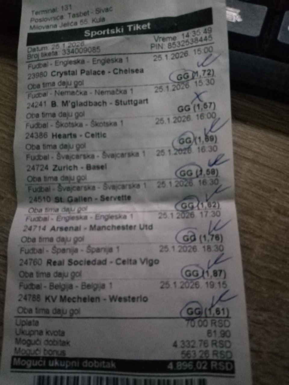 Upropastih procenat pogodjenih dublova zbog srljanja. Vise to ga nema. Da sumiramo od cetvrtka do danas +61.400din, a bilo je 80 i nesto hiljada danas smo malo pali no nije vazno plus je plus koliki god on bio. Čujemo se u sredu kad krene LŠ do tad hladjenje. Pozz