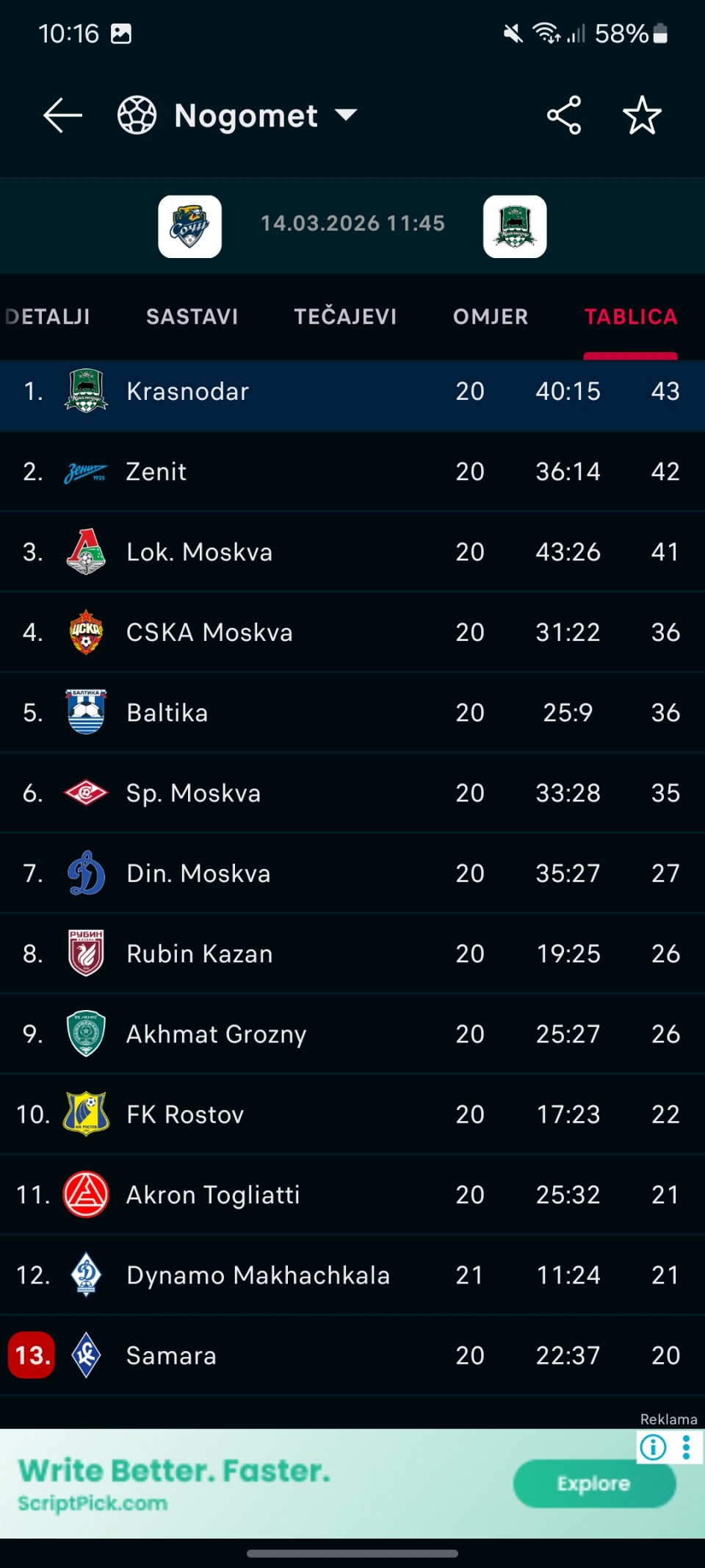 Kvota na prvi Krasnodar 1.35 protiv poslednjeg Socija, po meni bi trebala biti dosta manja.