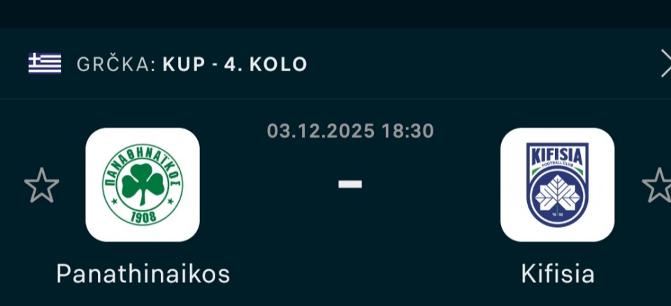 Po meni vrlo realna dva para Kifisia ekipa koja igra otvoreno a I kup je gde se igra otvoreno I dosta omladinaca se ubacuje pa Tu vidim da mogu da iskoriste svoju sansu, A sto se tice...Prvi mec: