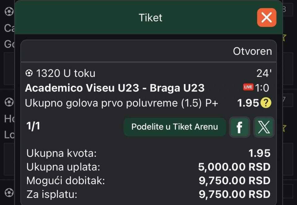 tip: over 1.5 (70 minut trenutni rezultat 1:0)