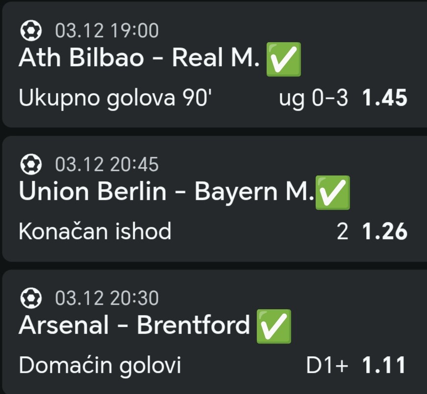 19:00 Bilbao - Real Madrid 2 (1.80) ✅