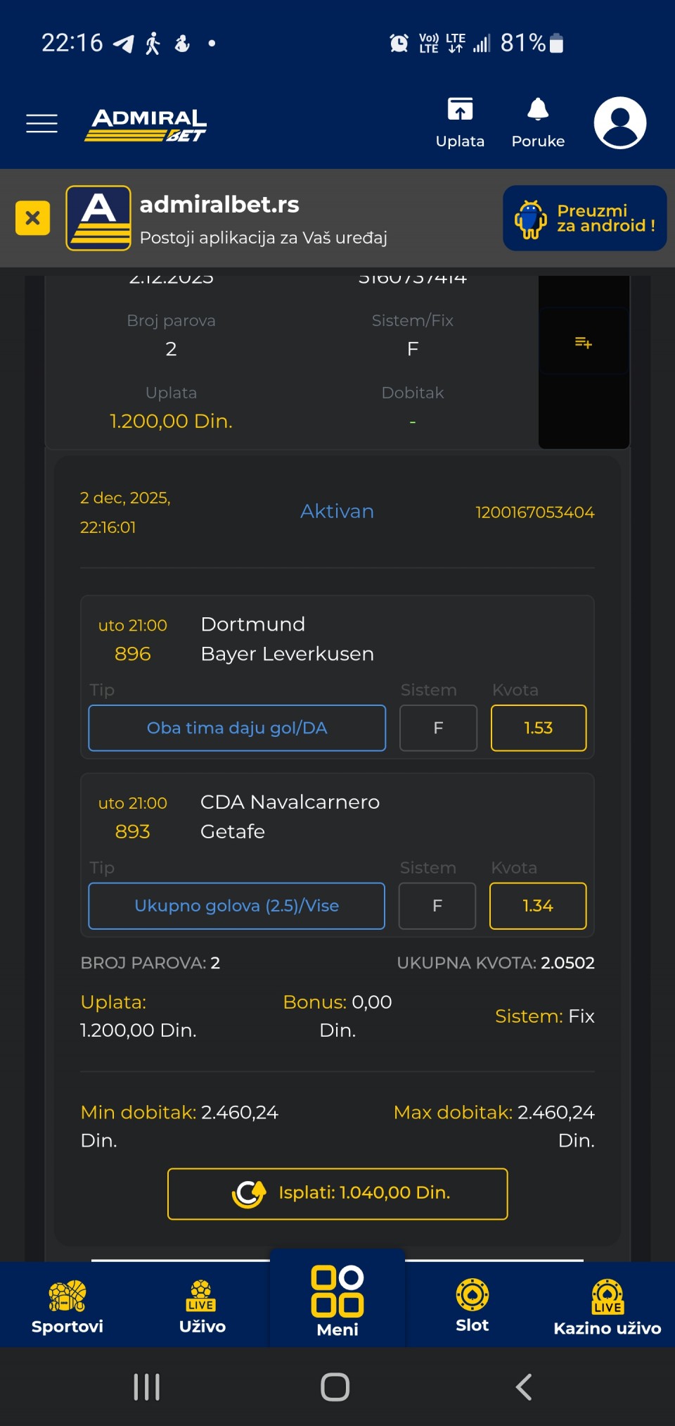 (02.12.) 𝙺𝚟𝚘𝚝𝚊: 1.90 → drugi korak