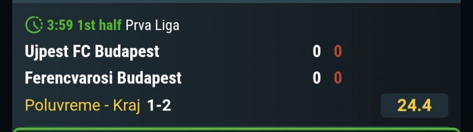 Bukvalno se kvota ista kao pre meca. Od kako je Honved ispao iz lige. Vezali su dve sezone. Podelili 3 boda u obe sezone. Jedan prelaz je bio u korist domacina. Danas sam mislio da ce ici iz keca pa da probam dvojku. Ovako 1:1. Stanje na tabeli je dodatni razlog da vredi napasti dvojku.