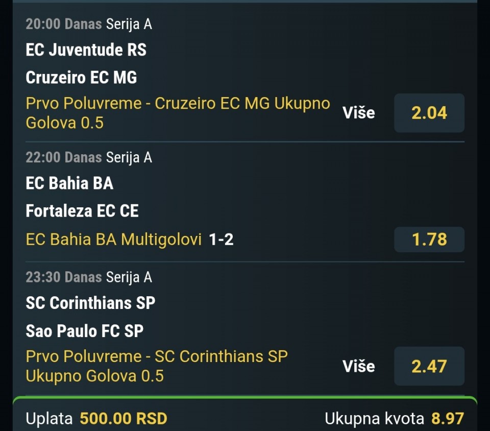 zbroj golova Mihić Lovro (1.5) OVER KOEF 1,6