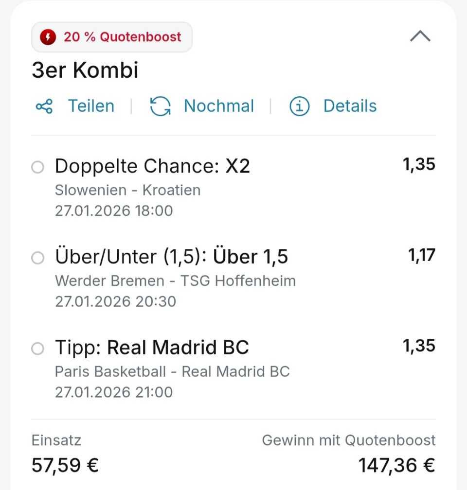 Juče su nas Nemci zajebali, probamo danas ovako. Nešto rizičnije nego inače, al su i kvote veće pa je opet okej što se tiče ulaganja.