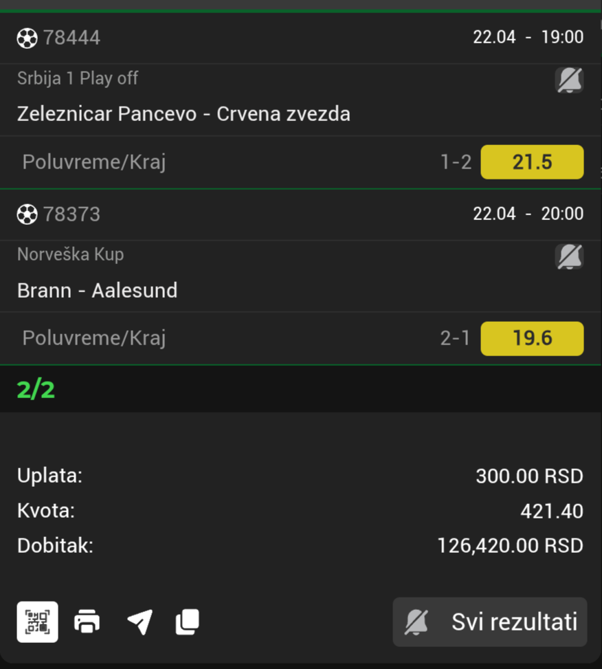 dublić "GG" @2.93 malo ruzičan ali jurimo dok nam ne pozeleni 🍏