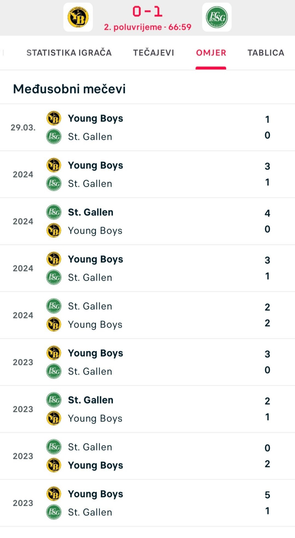 Ovo moram odigrati. Young Boys NIKADA medjusobno nije kod kuce izgubio od St. Gallena.