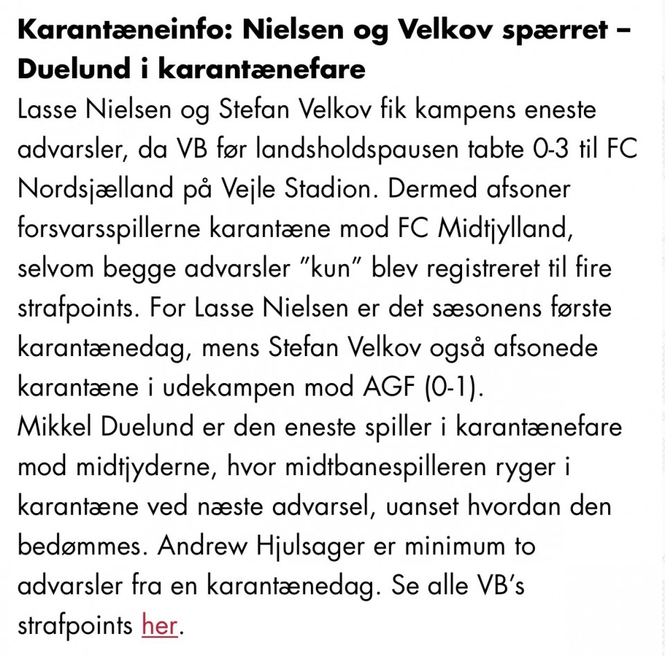 3 defanzivca Vejlea su odsutna. 2 centralna Lasse Nielsen (11/0 D) i Stefan Velkov (10/3 D), dok je bek Thomas Gundelund (10/0 D) povredjen. Midtjylland sa druge strane u...➡️ DANSKA: Superliga