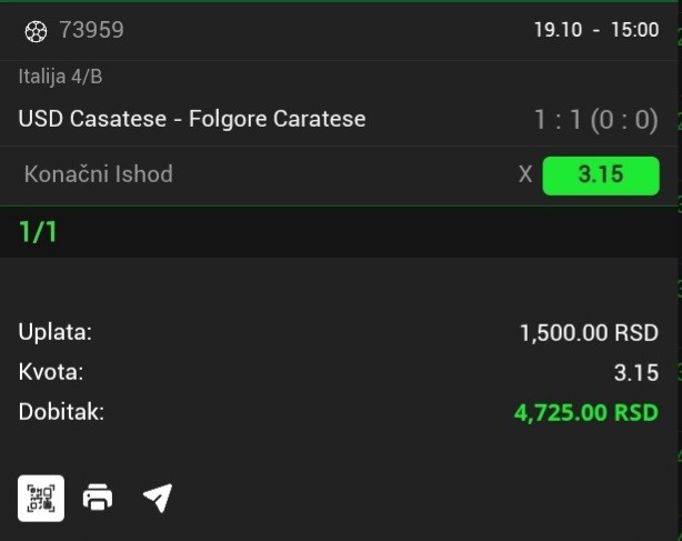 Bukvalno se kvota ista kao pre meca. Od kako je...Ispostavilo se da ima necega izmedju ova dva tima. Ja cu ovaj mec negde zabeleziti. Kada Folgore bude domacin. Igramo ga keca u revansu.