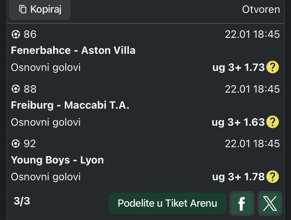 Prijedlozi za večernje termine biće u komentaru, kasnije, kad dospijem ispisati, ovo je za ovaj prvi termin Efes - Oly.