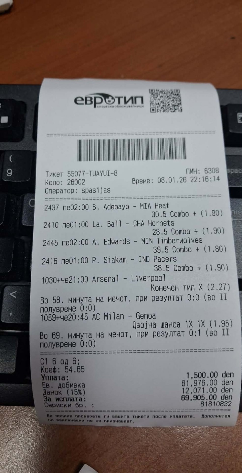 tip: over 0.5 pp (15 minut)