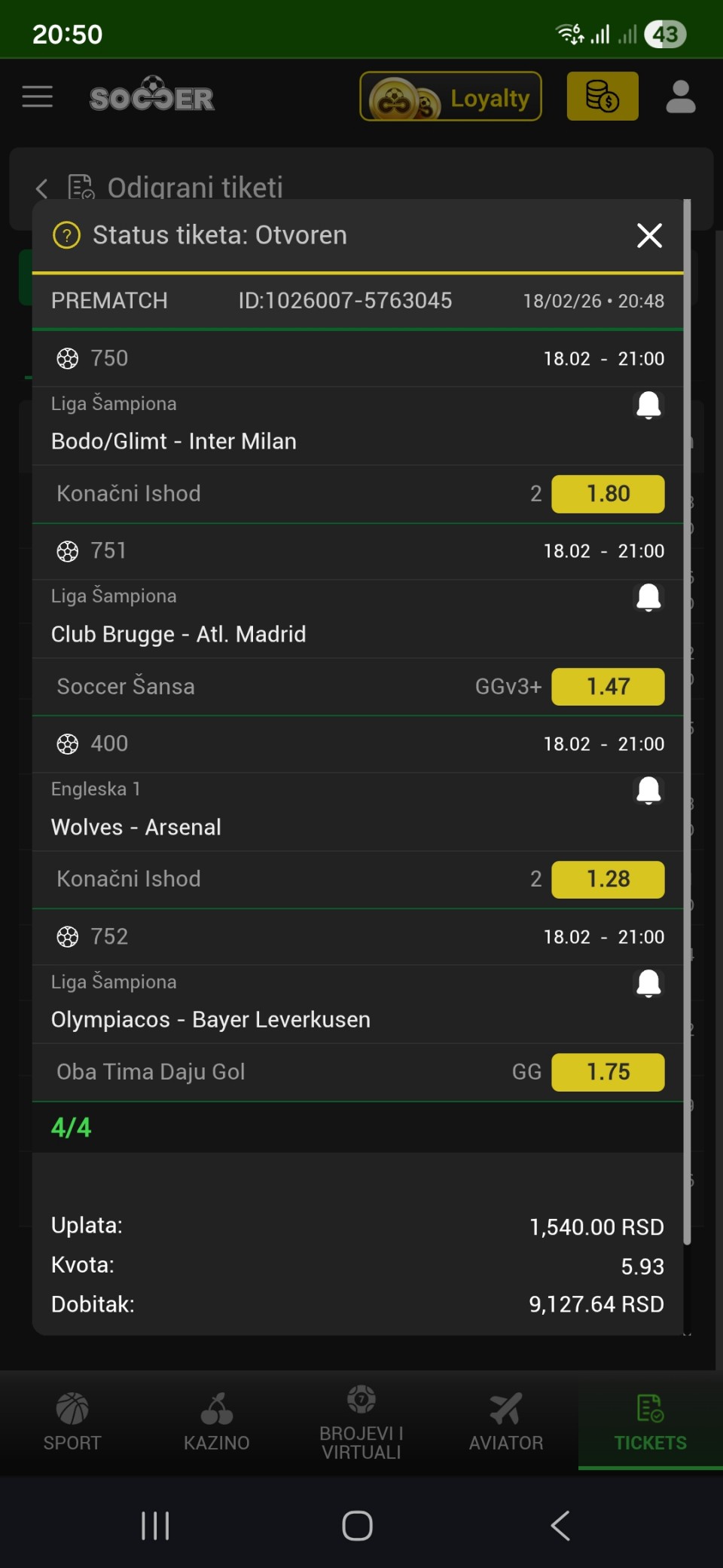Dobro veče džezeri ....Gledam pa ide neki skromni predlog ..Srećno tipsteri