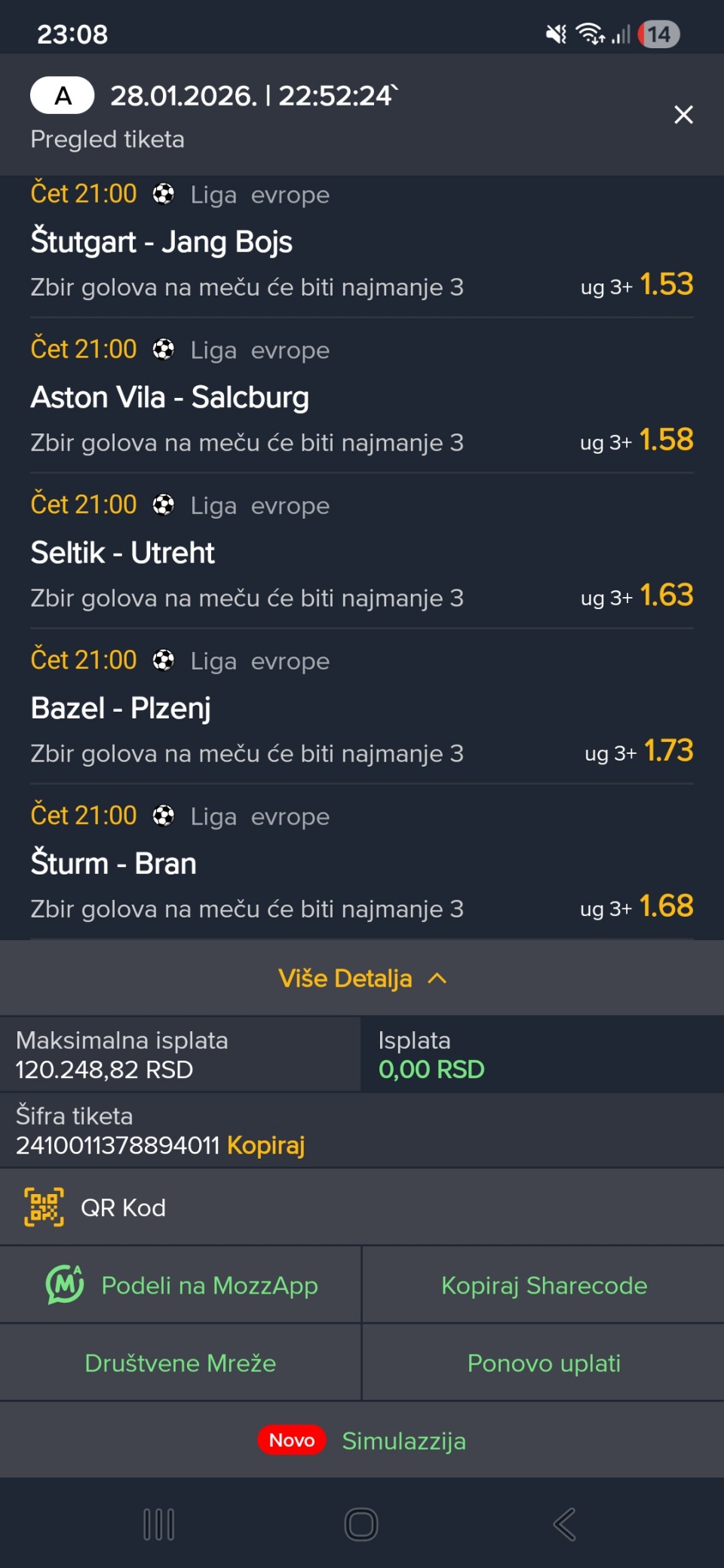 Za sutra jedan lagani tiket da se eto prati cisto pa ako neko hoce nek izabere nesto, srecno 💥