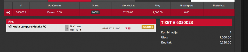 Nije me bilo duze vrijeme a posto cu veceras probati sastaviti nesto podijelit cu i ovdje sa vama. Ukupna kvota je 6.33.
