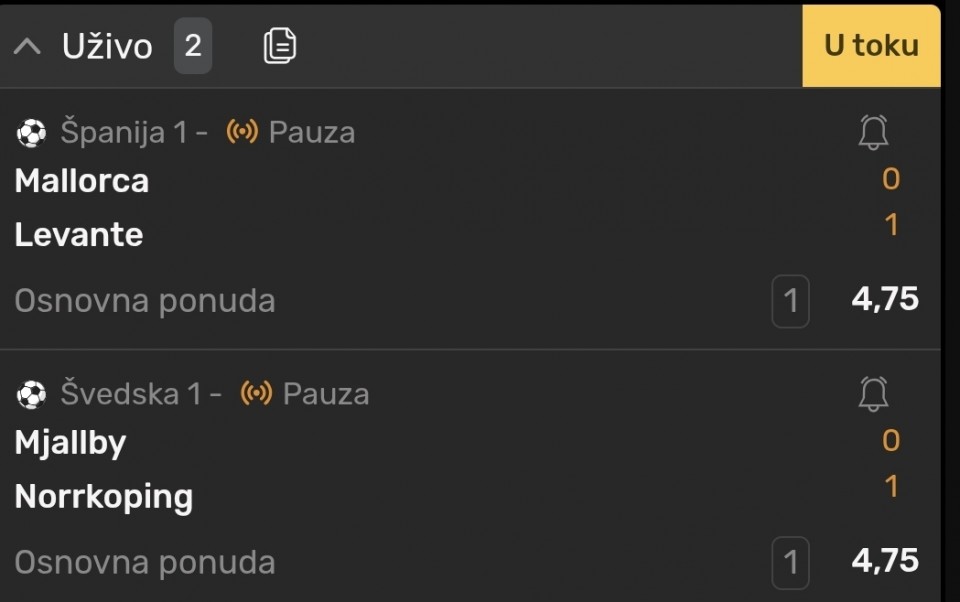 Live Majorka 1,5+ 1,45 , Vejle 3,5+1,83 15 min domaćin vodi 1-0 .Manji ulog Sretno ko prati Maxbet