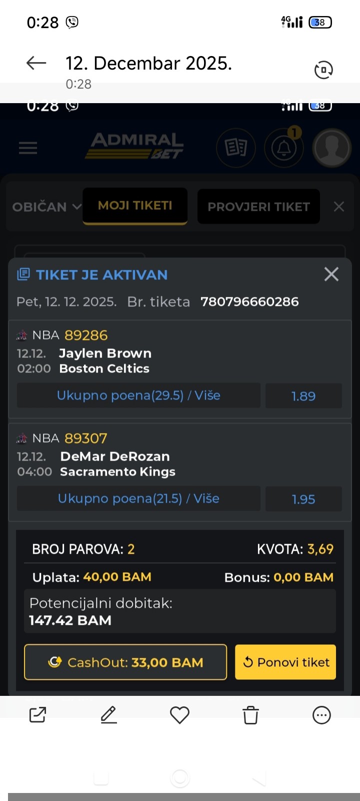 dva NBA tiketa najniže granice, ko voli ova sranja evo